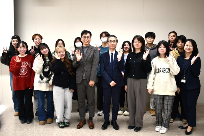 1月15日(木)4時間目には、御井本館ラーニングコモンズBにて、本科目の集大成となる最終プレゼンテーションを実施しました。連携企業のご担当者をお迎えし、学生たちはこれまでの調査・分析の成果をもとに提案内容を発表しました。実務的な視点を踏まえた内容や学生ならではの着想に対し、企業担当者からは講評とともに貴重な助言が寄せられました。